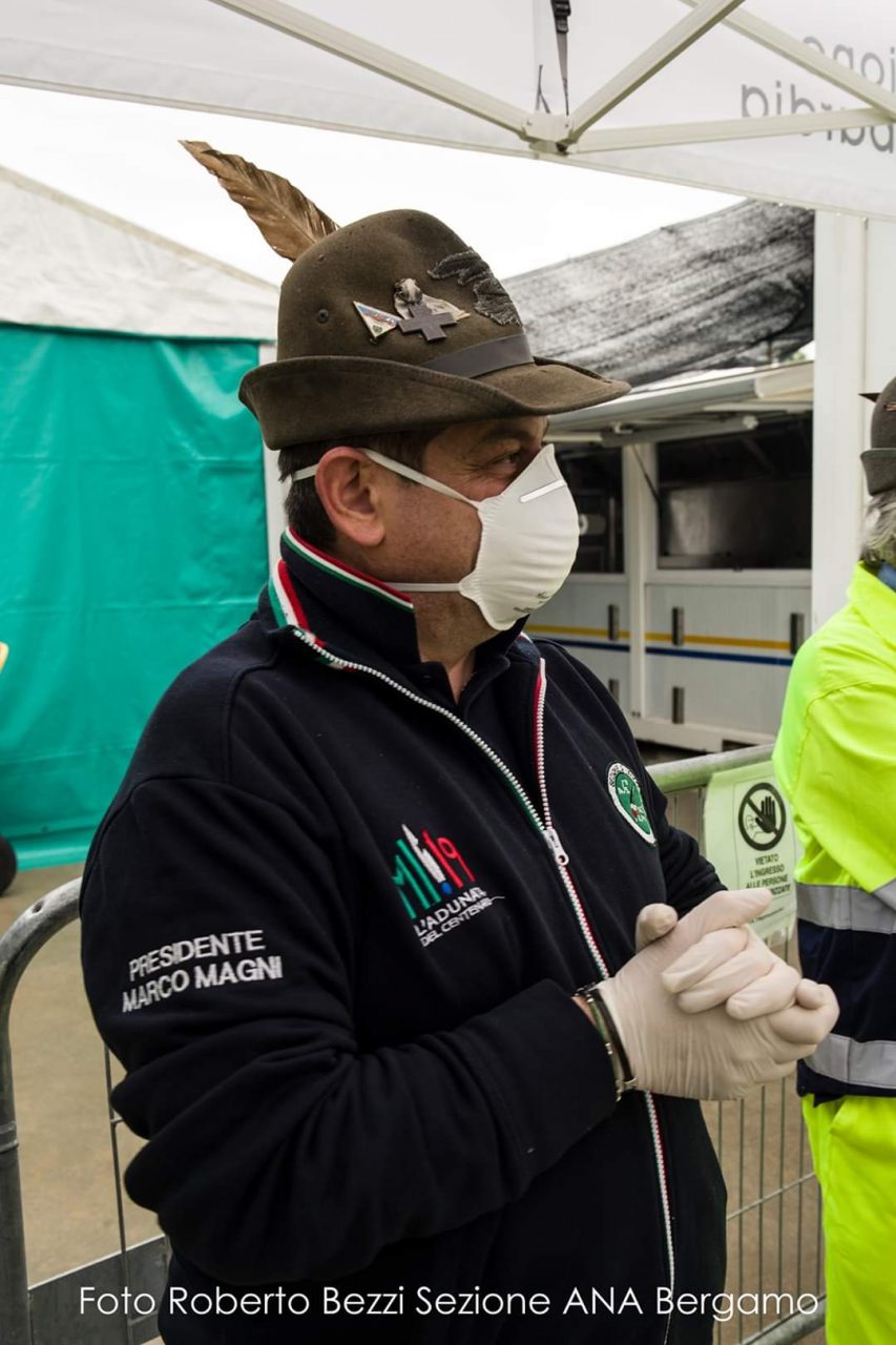 Ieri, mercoledì 13 maggio 2020 il presidente della Sezione di Lecco, il robbiatese, Marco Magni si è recato a Bergamo per una visita ispettiva ai suoi Alpini, che stanno prestando la loro opera  presso il Campo Base a supporto dell’Ospedale da Campo dell’ANA. “Credo che anche la giornata al Campo Base ANA e all’Ospedale da Campo con i nostri Alpini,  rimarrà nel mio cuore come esperienza di vita. – ha dichiarato Magni – Ho costatato un ordine incredibile al campo base, dove niente è stato lasciato al caso, ho trovato le strutture funzionanti alla perfezione in ogni reparto. E poi i nostri volontari mi hanno accompagnato per il campo spiegandomi nei particolari come sono sistemati e come gestiscono i loro personali incarichi: bravi sono orgoglioso di Voi! “.