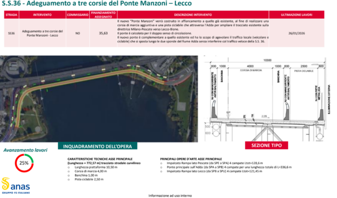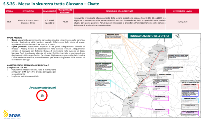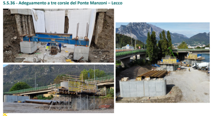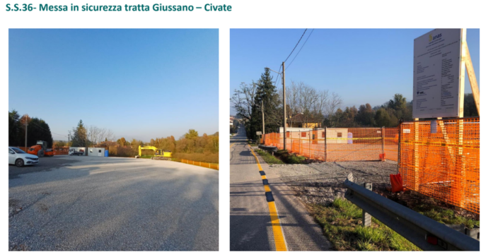 febbraio 2026 si prevede invece il completamento del cantiere sulla tratta Giussano-Civate sempre della SS36. Un altro cantiere è in corso sulla 36dir tra Lecco e Ballabio per la mitigazione del rischio frane.