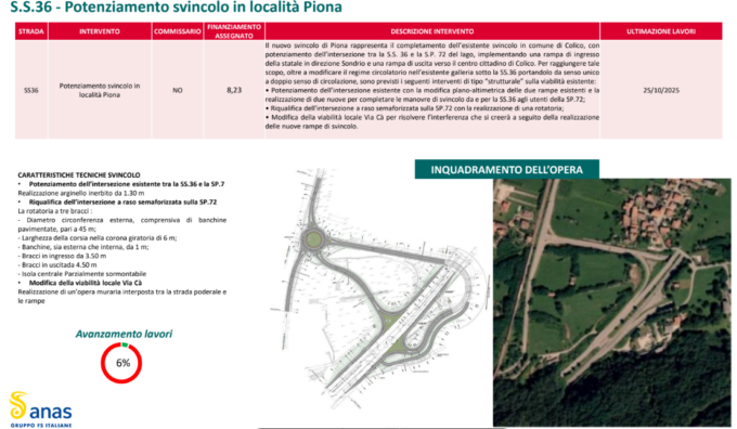 il potenziamento dello svincolo di Piona per il quale si prevede la fine lavori a novembre 2025.
