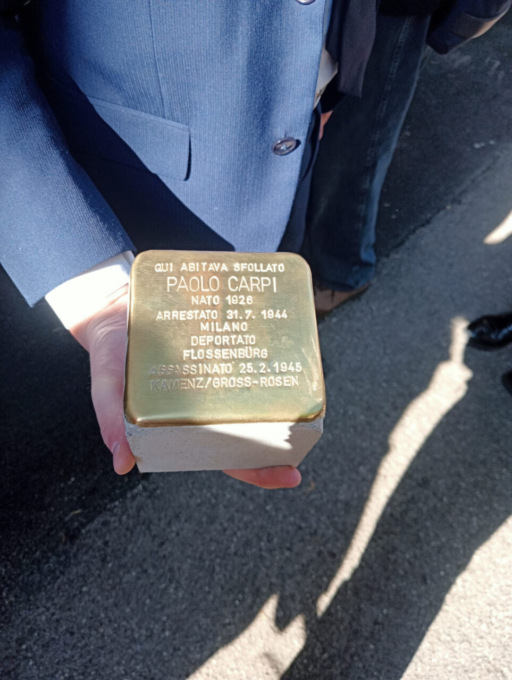 Una famiglia che ha pagato il prezzo più alto nel periodo più buio della storia del nostro paese. Una famiglia alla quale oggi, lunedì 25 aprile 2022, in occasione del 77° Anniversario della Liberazione dell’Italia dal nazifascismo, l’Amministrazione comunale di Olgiate ha fortemente voluto rendere omaggio con la cerimonia di posa e inaugurazione delle pietra d’inciampo in memoria di Paolo Carpi, figlio del pittore Aldo Carpi. Il padre, sfollato  con la famiglia nella frazione  olgiatese di Mondonico venne  arrestato il 23 gennaio del 1944 e deportato a Mauthausen. Sui figlio  Paolo venne catturato  a Milano e deportato  a Flossenburg e in seguito  a Kamenz. Lì venne ucciso a soli 18 anni. Un sacrificio la cui memoria rimarrà imperitura con il simbolo che da oggi campeggia davanti all’abitazione di Mondonico, in via Gola, al civico 41.