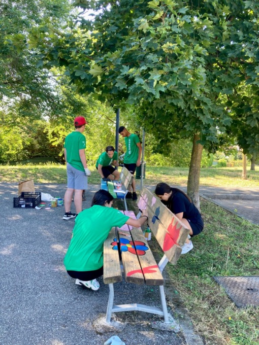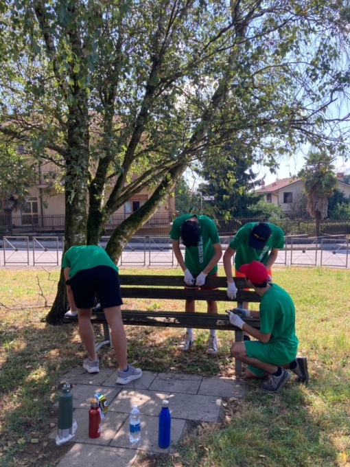 Gli adolescenti che hanno partecipato a Util’Estate, 14 in totale tra Montevecchia e Cernusco, sono stati impegnati anche nella sistemazione delle panchine all’altezza della Madonnina di via del Brughé, che sono state scartavetrate e ridipinte in maniera più tradizionale.