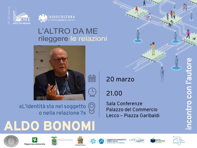 Due gli appuntamenti da segnalare in calendario lunedì 20 marzo, entrambi promossi dal Comitato Scientifico di Leggermente per andare a sviscerare il tema scelto per la quattordicesima edizione, ovvero “L’altro da me. Rileggere le relazioni”. Alle ore 18, ancora presso la sala conferenze di piazza Garibaldi 4, don Marco Crippa – sacerdote della Diocesi di Milano, ordinato nel 1999 e dal 2017 parroco a Monticello – interverrà sul tema “L’uomo contemporaneo nella relazione con la trascendenza. Quale etica della responsabilità?”. Alle ore 21, sempre nella sede di Confcommercio Lecco, sarà il sociologo Aldo Bonomi – fondatore e direttore del consorzio Aaster, editorialista per diverse testate tra cui in primis Il Sole 24 Ore, studioso e conoscitore delle trasformazioni della composizione sociale nei contesti urbani ed extra urbani, con particolare riferimento al mutamento del rapporto tra smart city e smart land, ai processi migratori, ai fenomeni di vulnerabilità e marginalità sociale – a parlare di “L’identità sta nel soggetto o nella relazione?”.