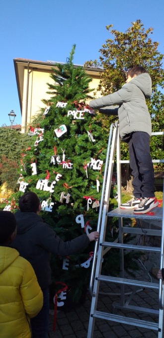 L’ albero di Natalina di Barzago si è riempito con speciali decorazioni. Nella mattina di ieri, mercoledì 7 dicembre i 101 alunni della scuola primaria si sono recati all’abete posto accanto al Municipio per legare la propria decorazione, che quest’anno riproduceva la parola PACE.