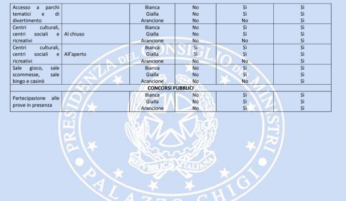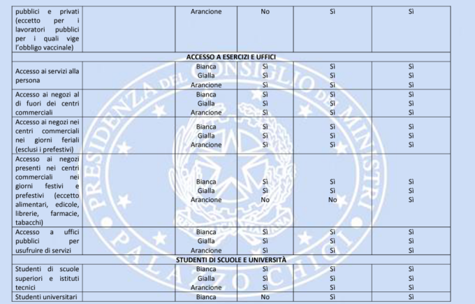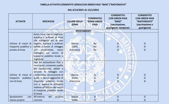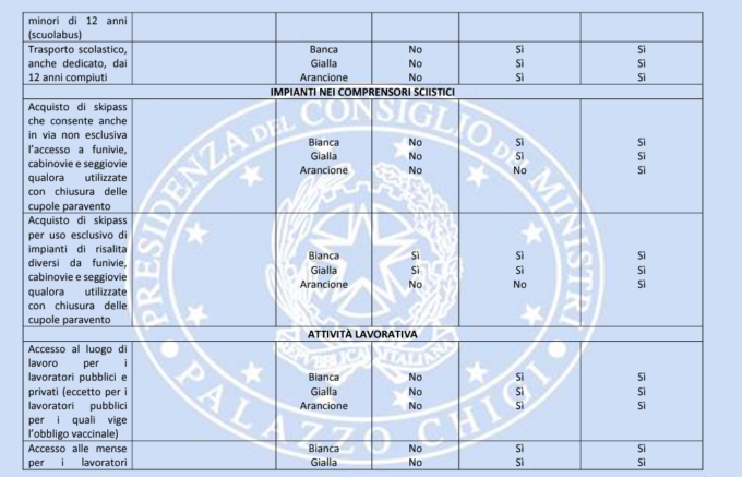 Non solo ma per aiutare i cittadini L’amministrazione ha anche pubblicato una tabella di sintesi che sintetizza dove è necessario l’utilizzi delle certificazioni verdi.