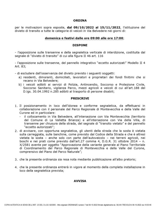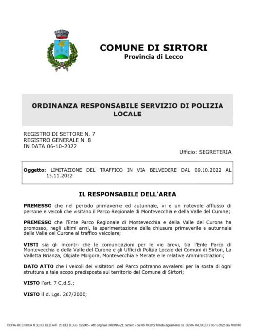 Il problema del copioso afflusso di persone, con annessi parcheggi selvaggi nei centri abitati, si ripresenta ogni anno in particolare con l’arrivo della primavera e dell’autunno. In vista del temuto “assalto”, infatti, diversi paesi del Parco del Curone hanno imposto la chiusura di alcune strade nel fine settimana e lo stesso ha fatto l’Amministrazione comunale di Sirtori, che ha vietato il transito in via Belvedere nei festivi e nei fine settimana con posizionamento di transenne all’intersezione con via Montevecchia (territorio del Comune di La Valletta Brianza) e all’intersezione con via della Villa.