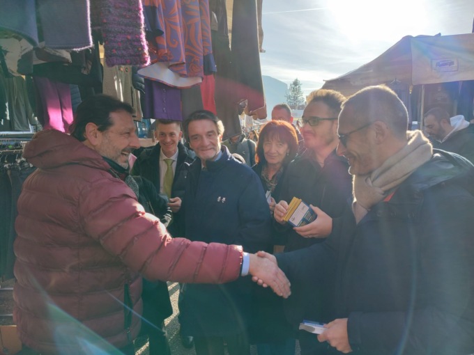 Attilio Fontana in visita a Lecco in vista delle elezioni di febbraio: il candidato del centrodestra alle elezioni regionali è arrivato in città nella mattinata di oggi, sabato 14 gennaio, e ha incontrato le persone al mercato, stringendo mani e fermandosi a parlare con tutti.