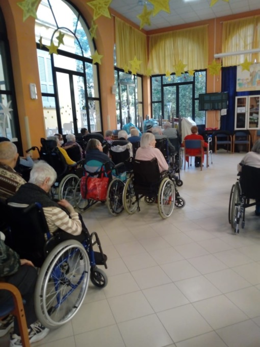 Babbo Natale porta i doni agli ospiti della casa di riposo