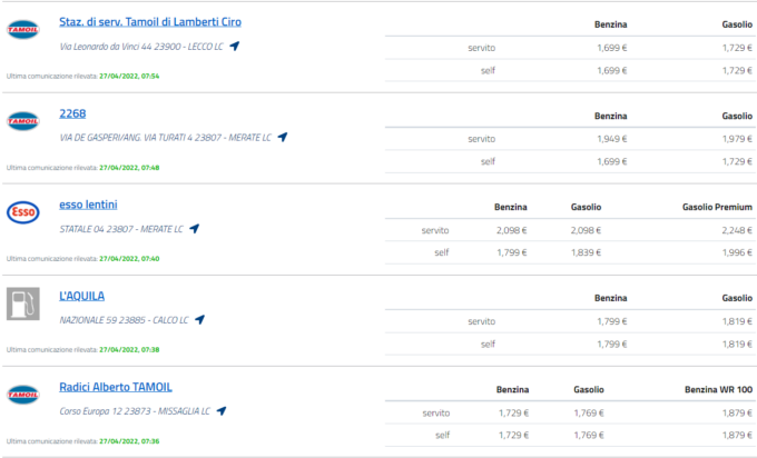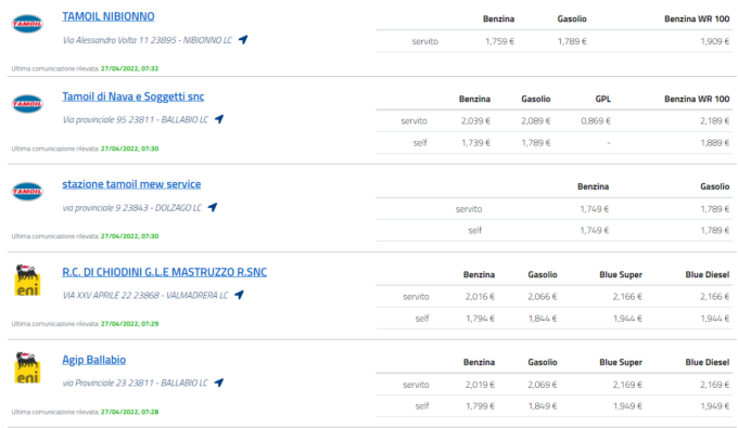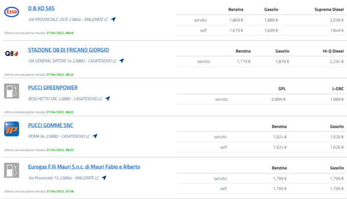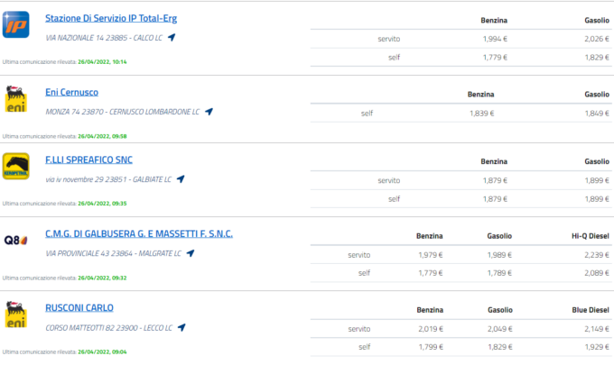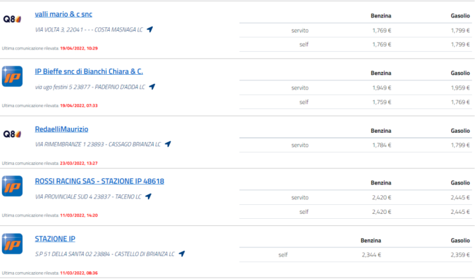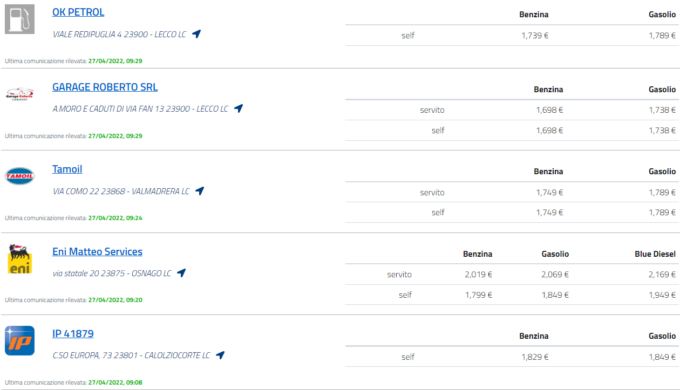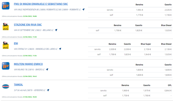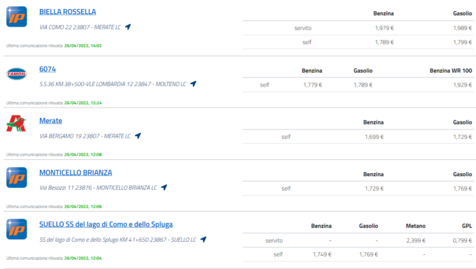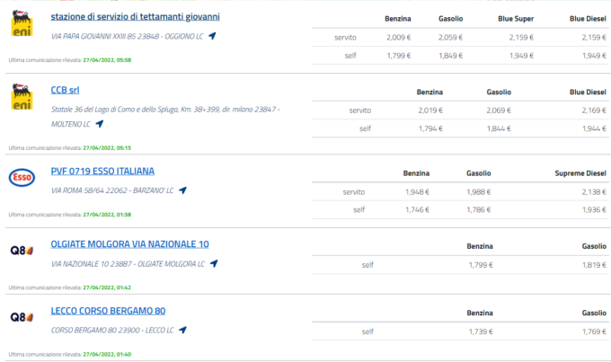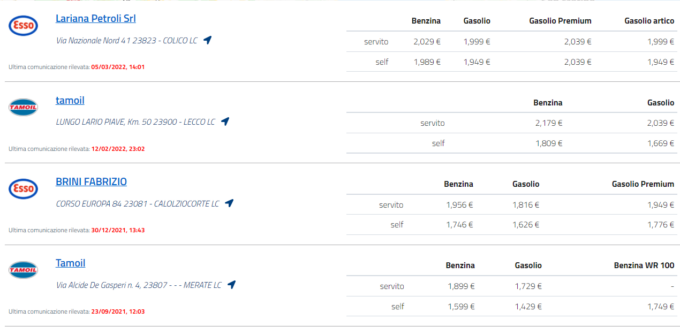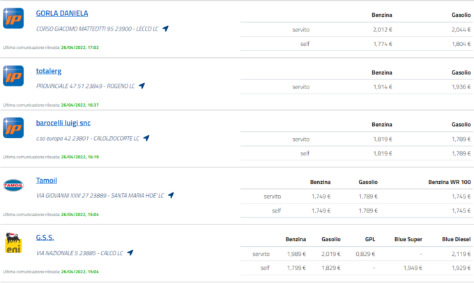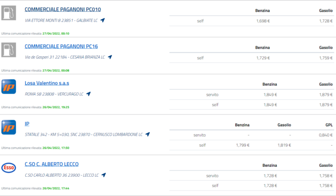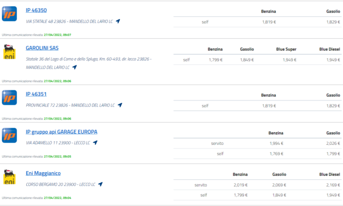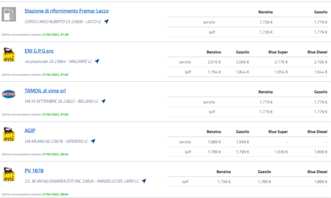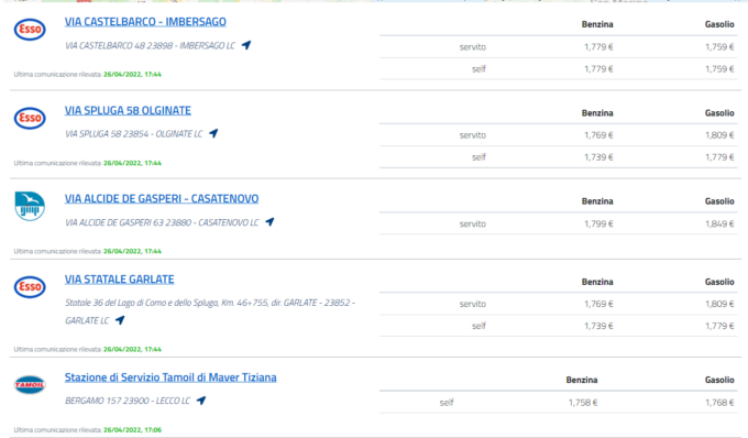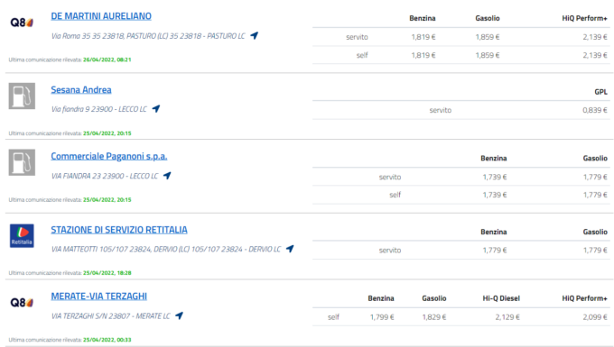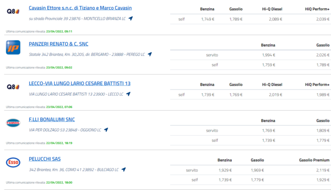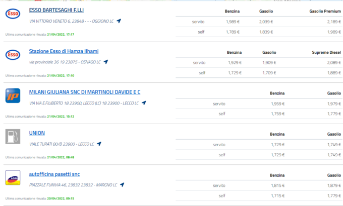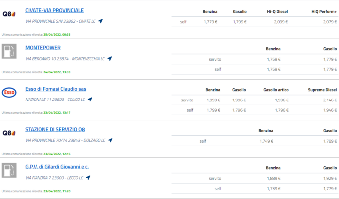E a Lecco? Siamo andati a guardare la situazione in ogni distributore e rispetto all’ultima rilevazione che via abbiamo fornito il 9 aprile scorso, i prezzi sono effettivamente aumentati.