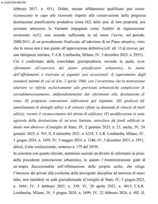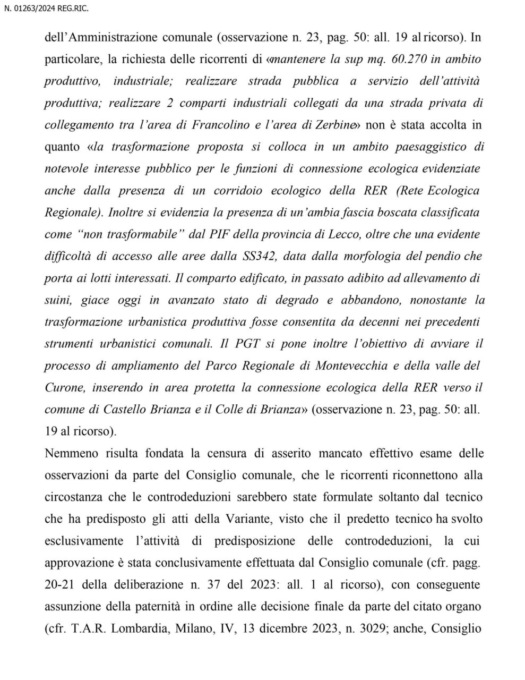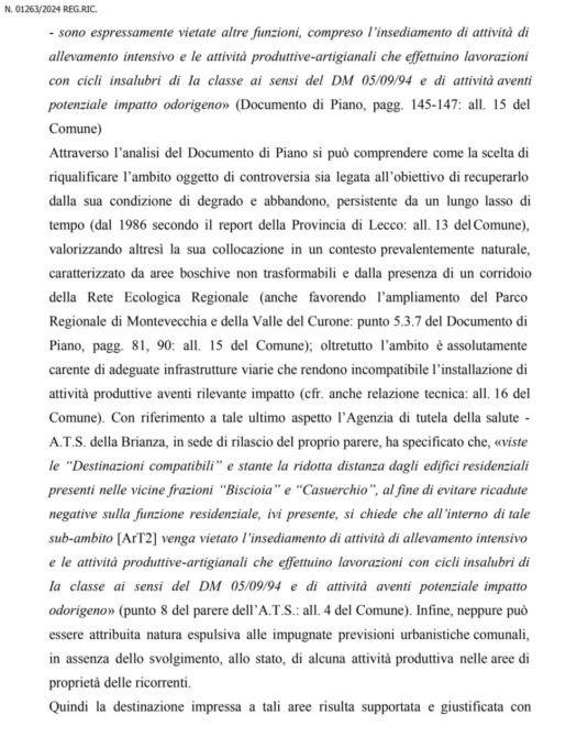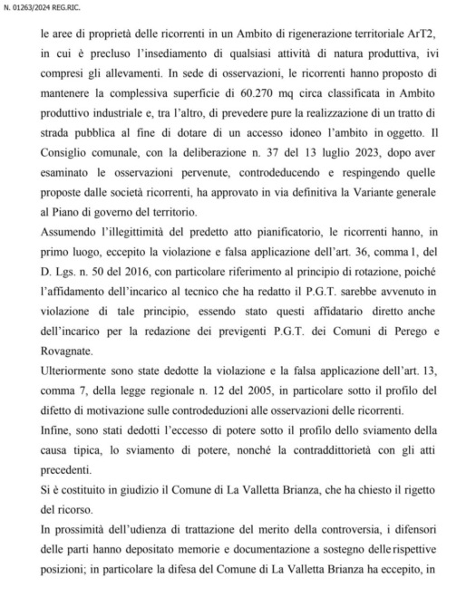 Quasi 10 milioni di euro di risarcimento danni e l’annullamento del Piano di governo del territorio: questo chiedeva al Tribunale amministrativo il colosso dei salumi, contestando la scelta dell’Amministrazione Panzeri che in sede di elaborazione della variante al Pgt – entrato in vigore il 27 marzo 2024 – aveva cancellato con un colpo di spugna la destinazione produttiva-industriale dell’ex allevamento nella zona di Francolino e Zerbine dove una quindicina d’anni fa l’azienda intendeva realizzare un nuovo capannone per ampliarsi.