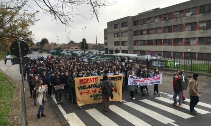 Studenti in piazza per protesta nella mattinata di oggi, venerdì 19 novembre 2021 a Merate. Ad organizzare la manifestazione, con il corteo partito dalla sede dell’istituto in via dei Lodovichi, e giunto fino a piazza Prinetti, cuore della cittadina, sono stati i ragazzi del Viganò.