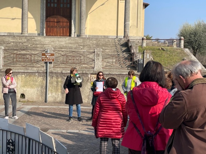 Le partecipanti, partite dalla chiesa di Calco e arrivate alla scuola primaria di Olgiate, dove hanno assistito a una toccante testimonianza