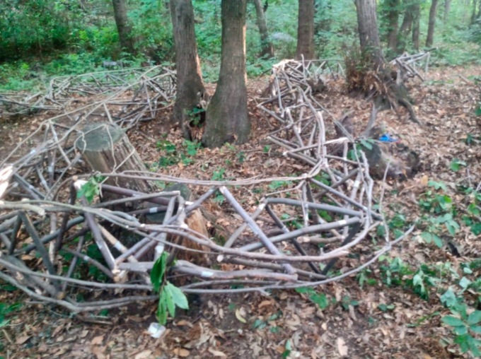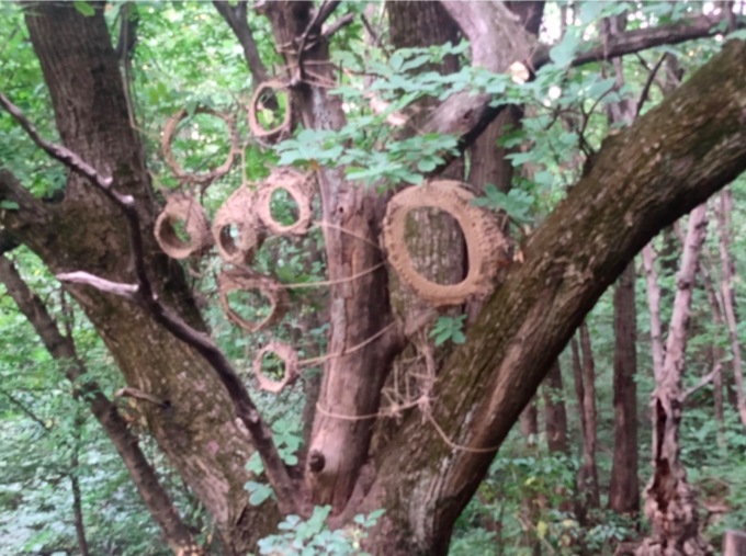 I ragazzi, accompagnati dagli artisti Lidia Meneghini e Luca Zanta, hanno creato due opere fatte di materiale naturale, legni tronchi e filo di yuta: un gruppo di nidi e un serpente lungo circa 10m.