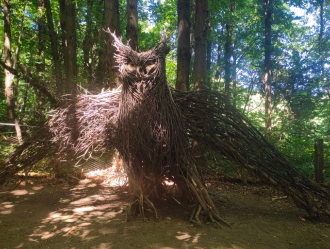 Le opere si trovano nel bosco di Cascina Rapello ad Airuno, insieme alle altre opere di land art realizzate nel corso dei precedenti campi estivi organizzati da Liberi Sogni questa estate: un grande gufo di 3m di altezza e 6m di larghezza, un osservatorio e una casa sull’albero.
