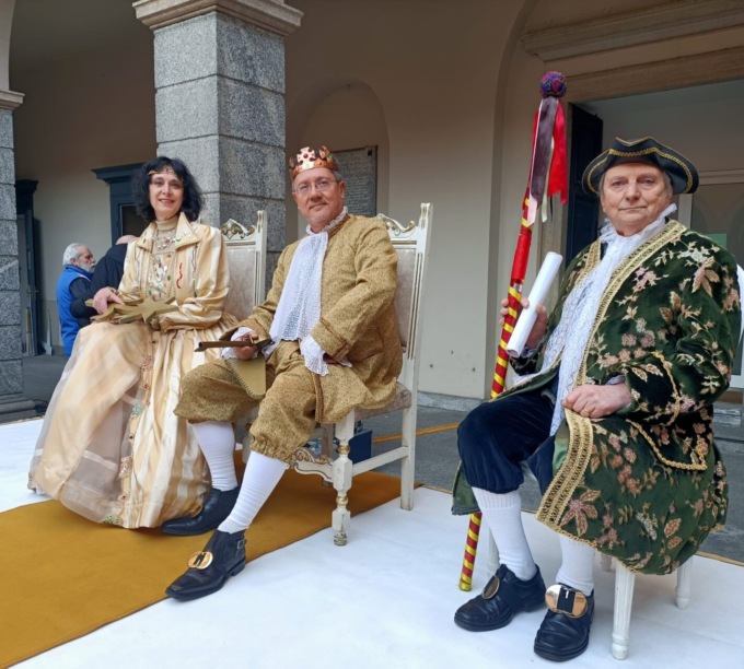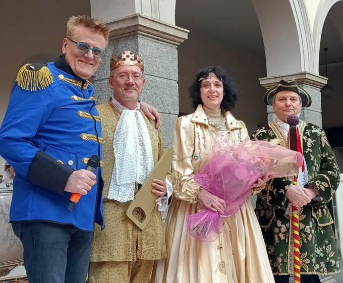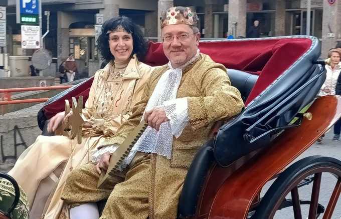 Con la consegna delle chiavi della città da parte dell’assessore Renata Zuffi nel cortile di palazzo Bovara ai nuovi regnanti Micaela Crippa (che abita a Merate ed è la caporedattrice del Giornale di Lecco ma in passato ha lavorato anche al Giornale di Merate), nelle vesti di Regina Grigna, Antonio Schiripo, nei panni di Re Resegone, e il Gran Ciambellano (Pietro Sala), ha preso il via il carnevalone di Lecco.