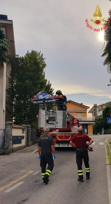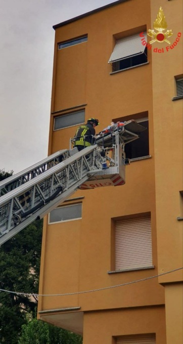 Dato il contesto si è valutato di utilizzare il supporto della barella e trasportare il residente dalla finestra con l'ausilio dell'autoscala.