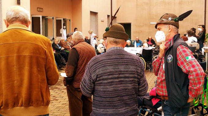 Gli ospiti della casa di riposo e del Css La mia Casa hanno gustato all’aria aperta la merenda a base di caldarroste preparate dal Gruppo Alpini e hanno potuto dilettarsi, nella calda atmosfera autunnale, con canti popolari che generosamente le Penne nere hanno cantato con loro.