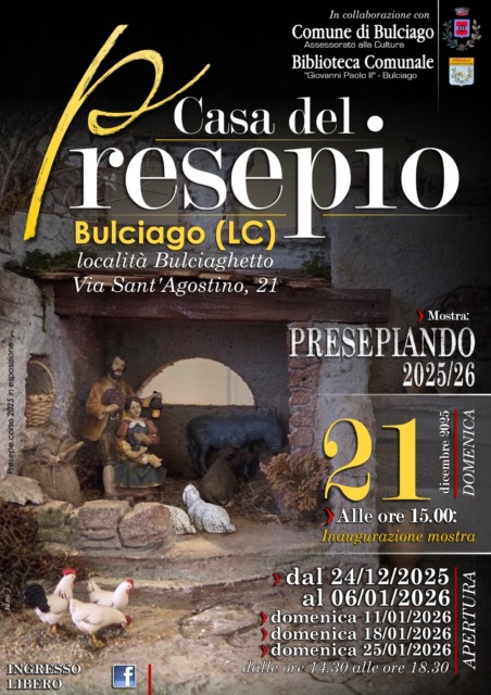 La rassegna, una consuetudine diventata ormai tradizione non solo per i bulciaghesi ma per gli appassionati di presepi che arrivano da tutta la provincia e oltre, è stata inaugurata lo scorso 21 dicembre nella Casa del Presepio di via Sant’Agostino a Bulciaghetto, restando visitabile per tutte le vacanze natalizie, grazie al curatore Angelo Gamba al resto del gruppo.