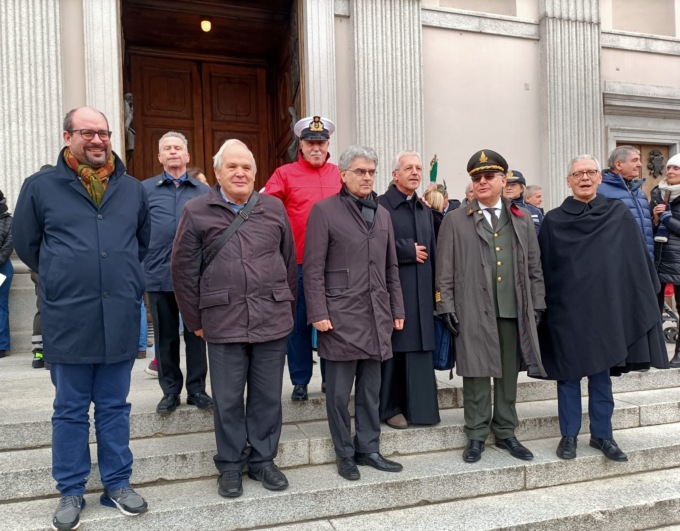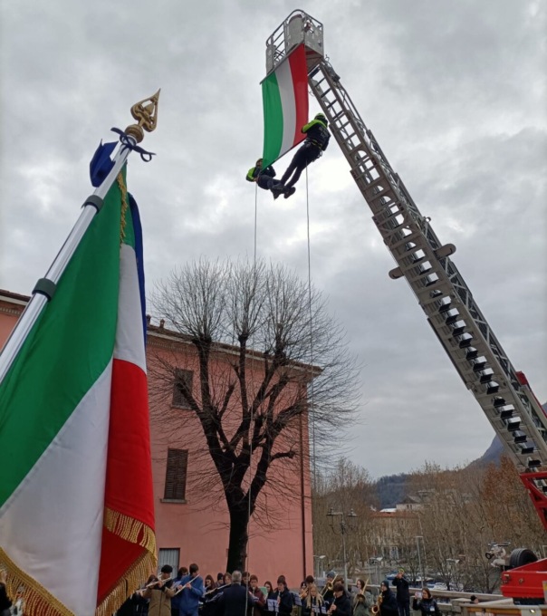 Al termine della cerimonia, davanti alla Basilica da un camion gru dei Vigili del fuoco è scesa la bandiera tricolore ,mentre gli alunni del liceo musicale Grassi,di Lecco hanno eseguito di Mameli.