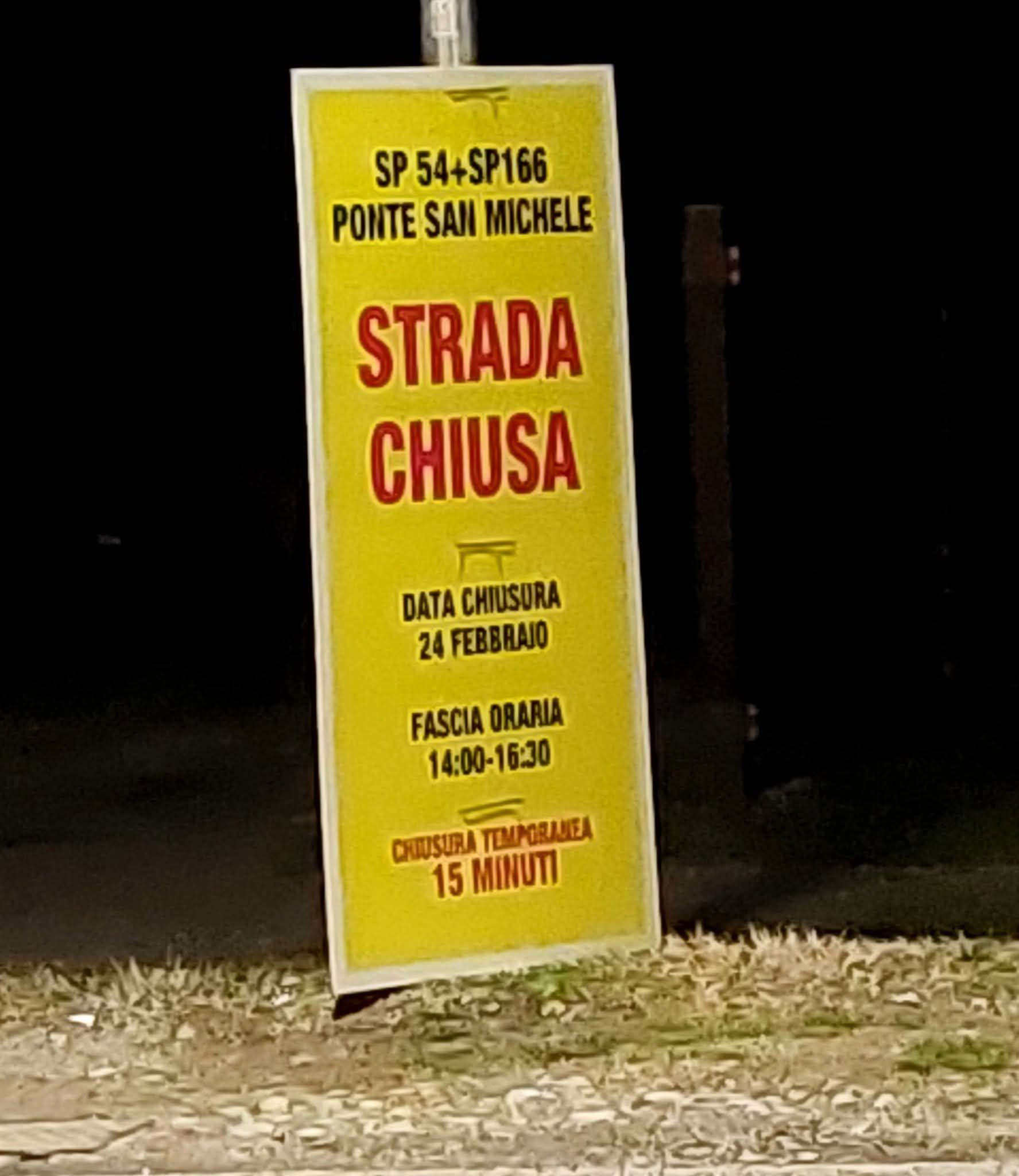 La chiusura temporanea, del tratto a cavallo tra le strade provinciali 54 e 166, è stata annunciata nei giorni scorsi attraverso dei cartelli affissi a bordo strada. Domani, come detto, la data prescelta per la chiusura, che come riportato nei pannelli informativi, avverrà indicativamente in una fascia oraria pomeridiana, tra le 14.00 e le 16.30.
