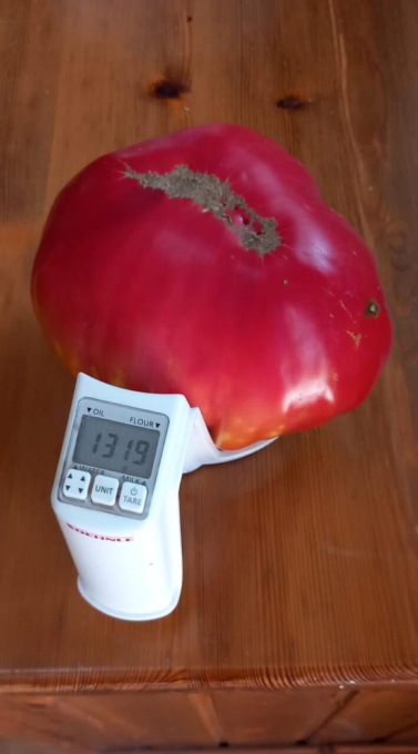La signora Marilena ha raccolto nel suo orto un "pomodorone" di ben 1 kg e 319 grammi.