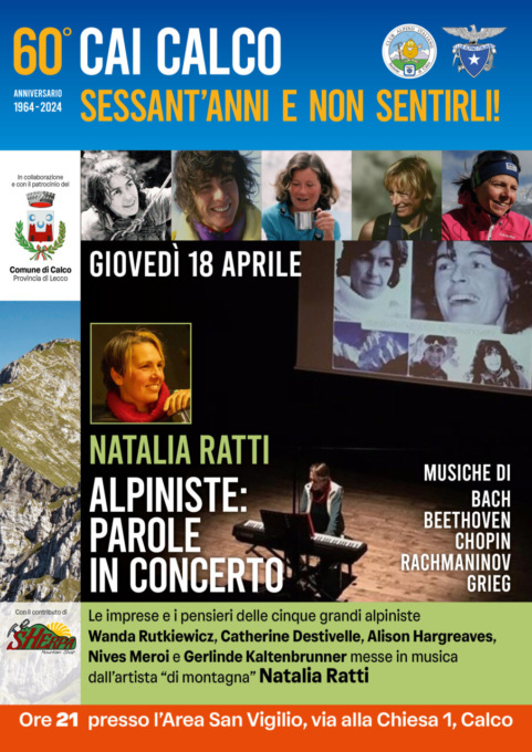 Le imprese e i pensieri delle cinque grandi alpiniste Wanda Rutkiewicz, Catherine Destivelle, Alison Hargreaves, Nives Meroi e Gerlinde Kaltenbrunner messe in musica da Natalia Ratti. Appuntamento alle 21 all’Area S. Vigilio a Calco.
