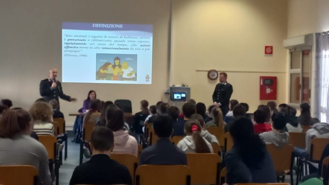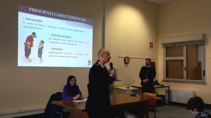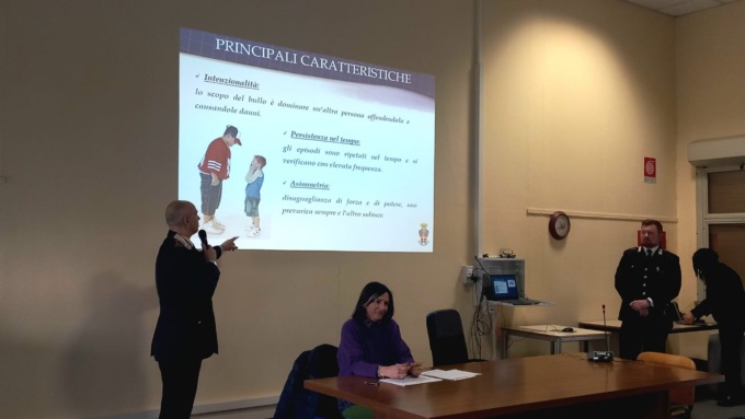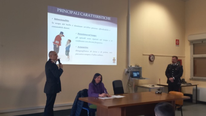 Il comandante Valenza ha mostrato ai ragazzi alcune definizioni importanti, come la differenza fra civile e penale, e alcune parole chiave centrali nell’affrontare il tema del bullismo e del cyberbullismo, come “violenza, prepotenza e aggressività”. Gli stessi ragazzi, poi, hanno raccontato alcuni episodi difficili vissuti in prima persona e da loro amici, condividendo le proprie esperienze, toccando anche il problema del razzismo.