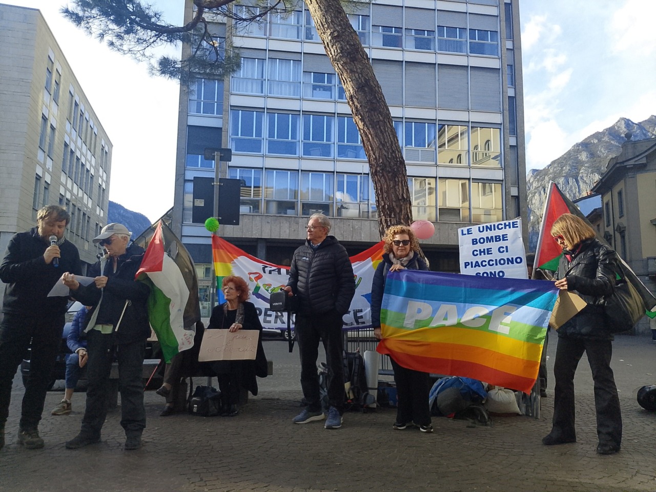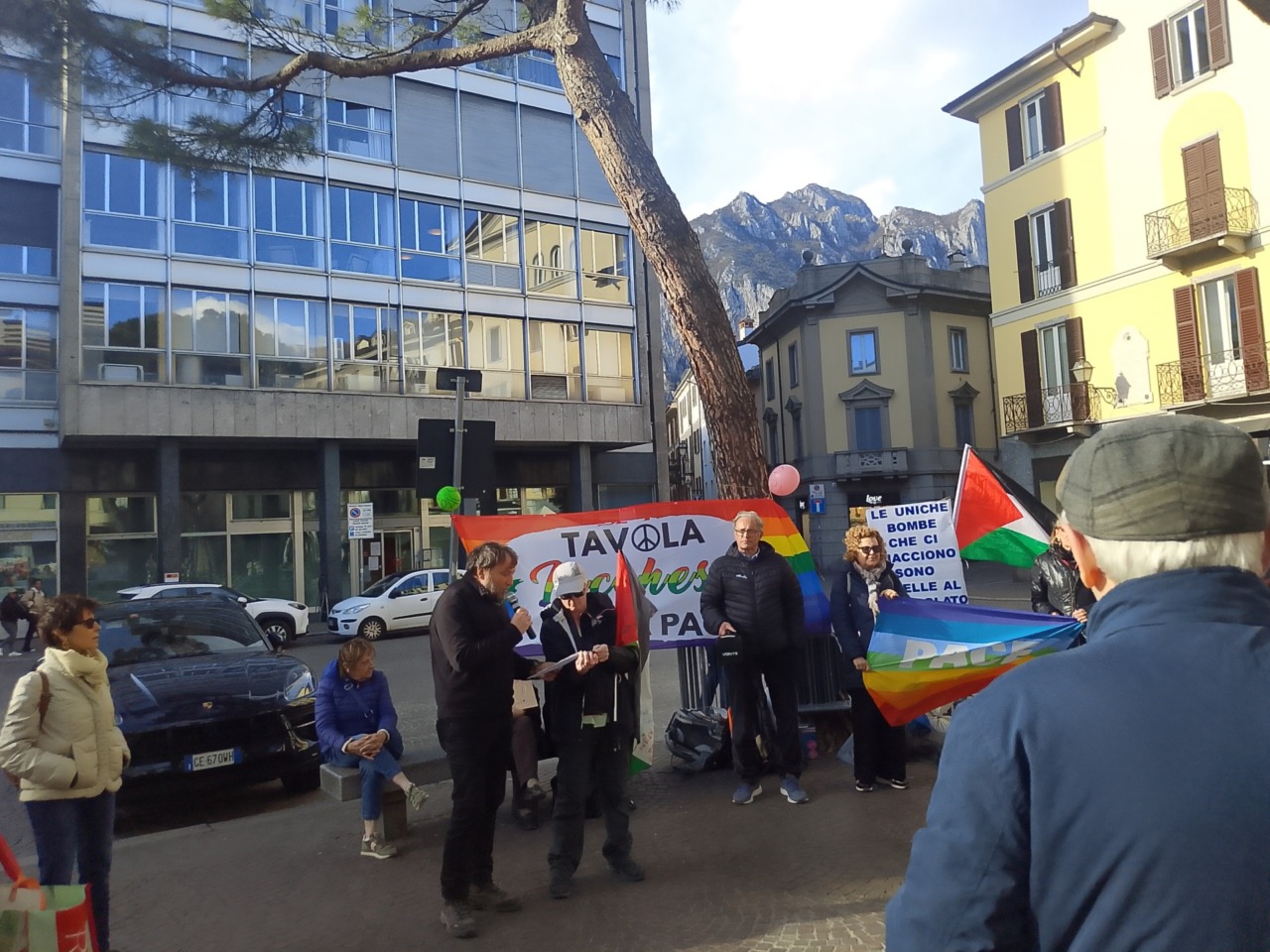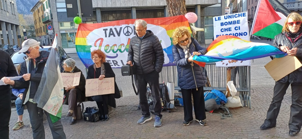 Ad accogliere con calore i partecipanti della Local March for Gaza in piazza Garibaldi c’era il gazebo della Tavola per la Pace di Lecco, che ha voluto dare un segnale simbolico ma significativo esponendo un cartellone con la scritta:
