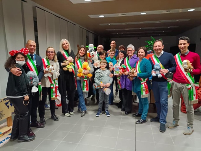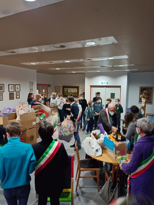 Sabato 26 novembre 2022, tutti i sindaci dei comuni aderenti e i loro delegati hanno preso parte alla consegna dei doni, non solo libri, ma del materiale per la creatività e l’arte, puzzle e animali o giocattoli di peluche.