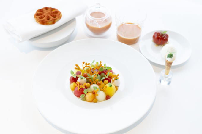 Italianità e mediterraneità i fulcri su cui lo chef imposta ogni sua portata in una ricerca costante dell’elemento visivo, tra colore e design, che denota la sua forte passione per l’arte e la cromia.