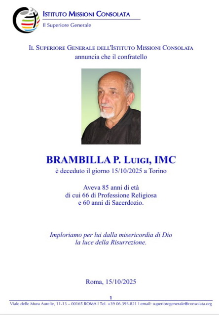 La comunità di Olgiate Molgora piange padre Luigino Brambilla, amatissimo missionario della Consolata. Aveva 85 anni.