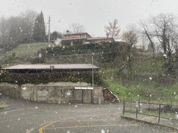 I primi fiocchi dell’anno nel meratese sono arrivati a Colle Brianza. Nel paese nevica … e non poco.