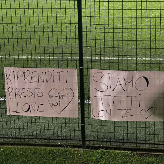 Gli striscioni sono stati appesi alla recinzione del campo sportivo della Casatese Nerate. Le frasi riportate “Riprenditi presto leone” e “Siamo tutti con te” sono apparentemente semplici, ma con un valore emotivo molto potente.