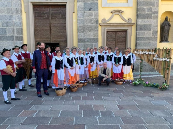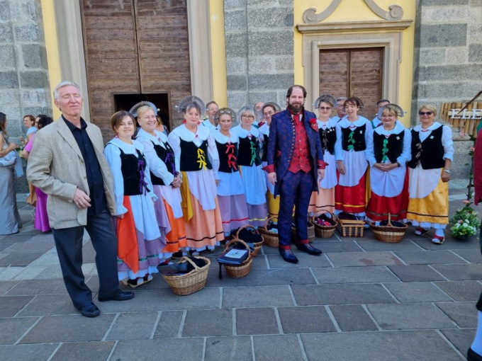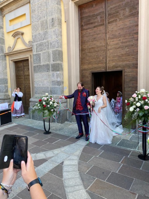 Più che un matrimonio, una grande festa di paese. Con la musica dei flauti di Pan e le voci delle coriste de La Campagnola di Olgiate che si è fusa con il suono delle cornamuse scozzesi. In un tripudio di colori e di sorrisi.