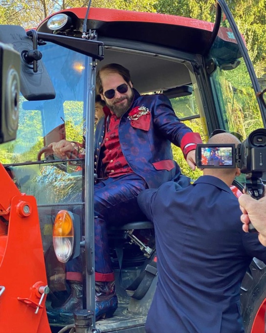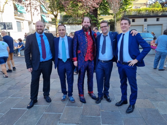 Un evento la cui preparazione è stata raccontata dal primo cittadino per mesi sui suoi canali social, allargando la partecipazione non solo ad amici e parenti ma anche ad alcuni sindaci e amministratori del territorio (di centro-destra). Tanti, tantissimi, i compaesani che si sono raggruppati in piazza padre Fausto Tentorio, dove il sindaco è giunto con largo anticipo rispetto all’orario di inizio della messa (le 11) a bordo del trattore di uno dei fratelli, con un abito appariscente a tinte elettriche tra il rosso, il blu e il viola.