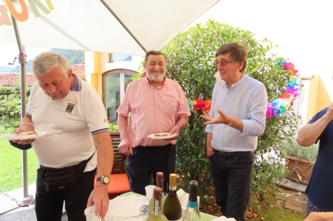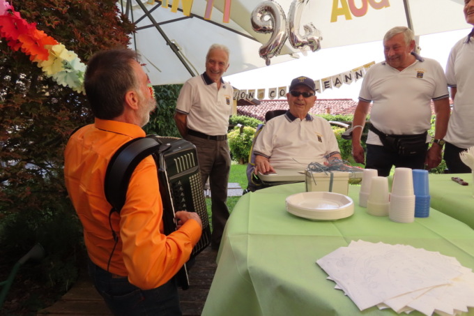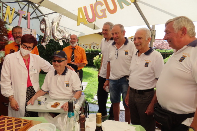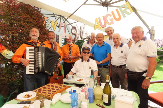 Ad accompagnare musicalmente il momento, il maestro Gabriele Bolis con la sua fisarmonica, Dario Bolis alla chitarra e Gilberto Garghentini al basso che hanno suonato e cantato all’aperto per Enrico: hanno intonato “Tanti auguri a te” e tante altre canzoni di una volta.