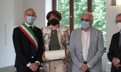 Riconoscimento ai fratelli Roberto e Cristiano Crippa, titolari della Technoprobe, l’azienda di Cernusco Lombardone che ha messo a disposizione un capannone del suo stabilimento per organizzarvi, a proprie spese, l’hub massivo vaccinale a servizio di tutto il Meratese. Presenti con i due “giovani rampolli” (come li ha chiamati affettuosamente il prefetto), anche i sindaci Giovanna De Capitani di Cernusco e Massimo Panzeri di Merate.