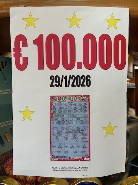 La dea bendata ha fatto tappa a Caprino Bergamasco. Nella giornata di giovedì, 29 gennaio 2026, al Sissy Bar di Caprino Bergamasco, è stata registrata una maxi vincita da 100.000 euro grazie a un Gratta e vinci della tipologia “Tombola Super” da 10 euro.