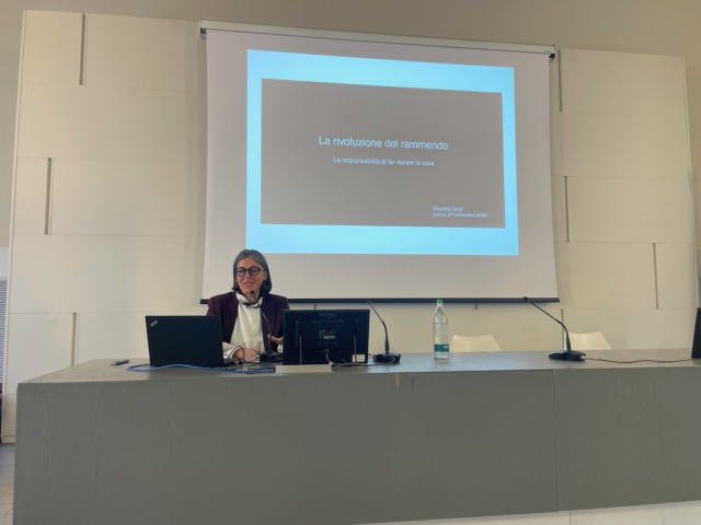 Domitillia Dardi, storica e curatrice di design, docente nei triennali e nei Master allo Ied di Roma e co-fondatrice e curatrice della fiera del design d’autore Edit Napoli, ha proposto una lectio su “La rivoluzione del rammendo. La responsabilità di far durare le cose”, un interessante excursus attraverso il design interrogandosi su concetto di obsolescenza, styling e responsabilità rispetto alla vita degli oggetti. Ha mostrato alcune soluzioni di riuso e seconda vita degli oggetti a partire dalla necessità, come nei Paesi in via di sviluppo o in situazioni di difficile reperimento di materiali, come in Urss, ma anche dal desiderio responsabile di progettare oggetti destinati a durare, pensati e realizzati per diventare “altro” in caso di rottura, come le ciotole di Paolo Ulina o i pavimenti in rame di Fioravanti in cui proprio attraverso l’usura e l’ossidazione emergono nuovi decori.