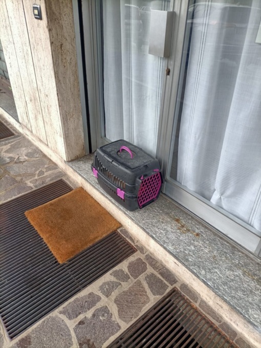 Gatto abbandonato fuori dalla sede dell’Enpa Merate, a Robbiate.