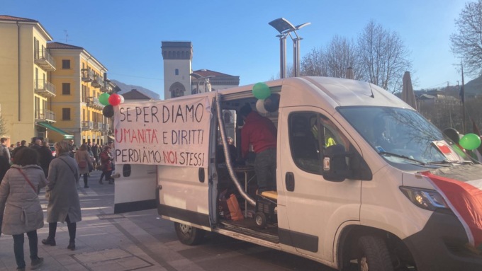ll 27 gennaio del 1945 il mondo intero aprì gli occhi sulle nefandezze perpetrate dal nazismo. “Ma il nazifascismo oggi non è morto – hanno gridato gli organizzatori del corteo – oggi si chiama revisionismo e sdogana il saluto romano. Il nazifascismo non è morto, oggi si chiama neoliberismo. Il nazifascismo non è morto, oggi si chiama sfruttamento dell’ambiente e dei lavoratori.  Il nazifascismo non è morto, si chiama rimozione della memoria”.