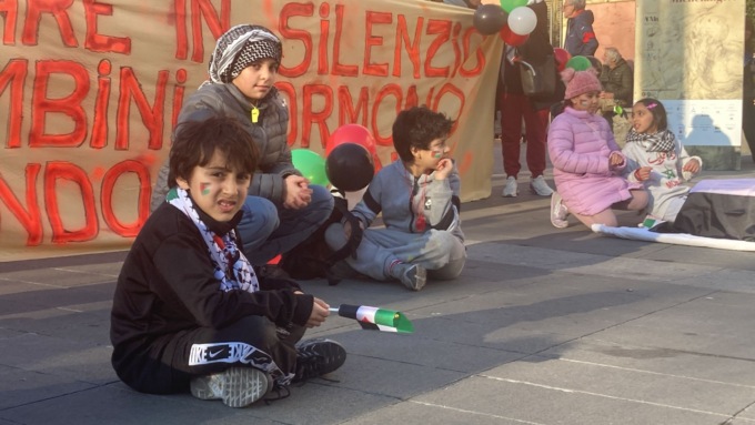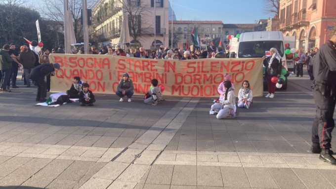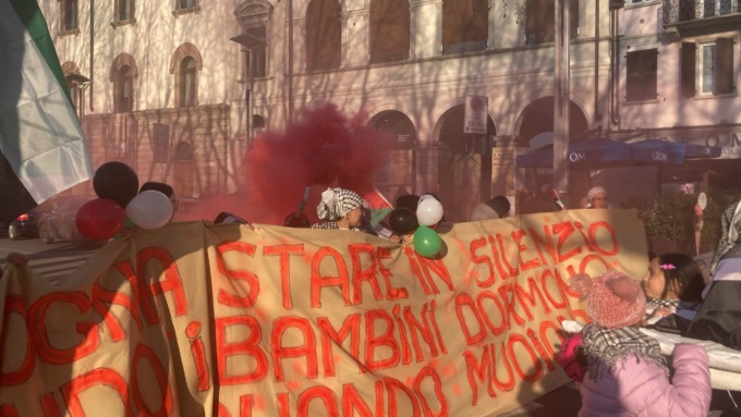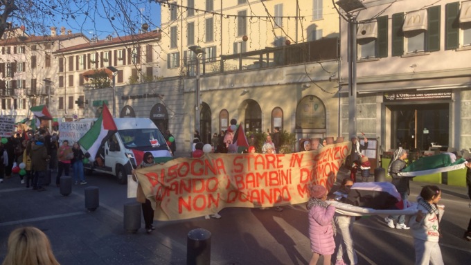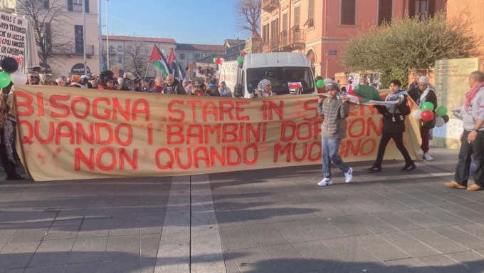“Oltre 26 mila civili uccisi e di questi la stragrande maggioranza sono donne e bambini “. Sì i bambini che oggi, in testa al corteo, portavano simbolicamente a  spalla dei piccoli feretri. Un’immagine che definire un pugno nello stomaco è poco e che non può non interrogare le coscienze di tutti. “Bisogna stare in silenzio quando i bambini dormono, non quando muoiono” recitava lo striscione in testa al corteo partito in piazza Cermenati.