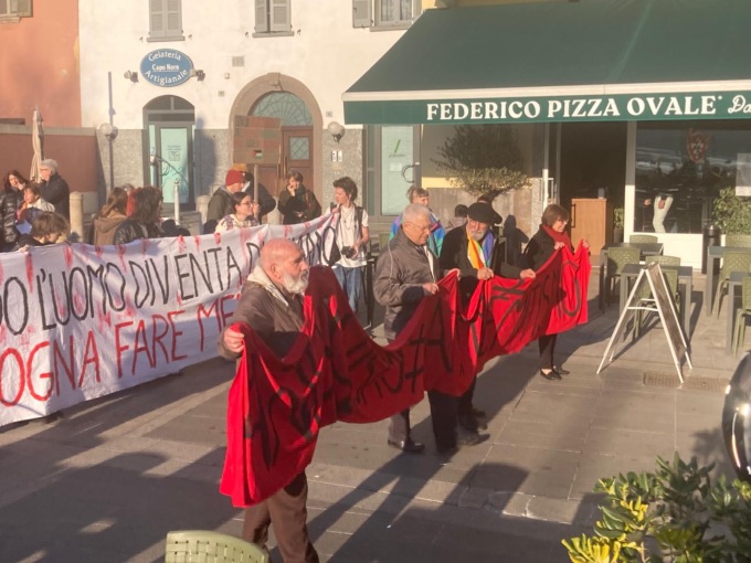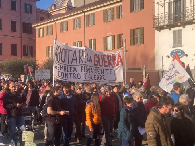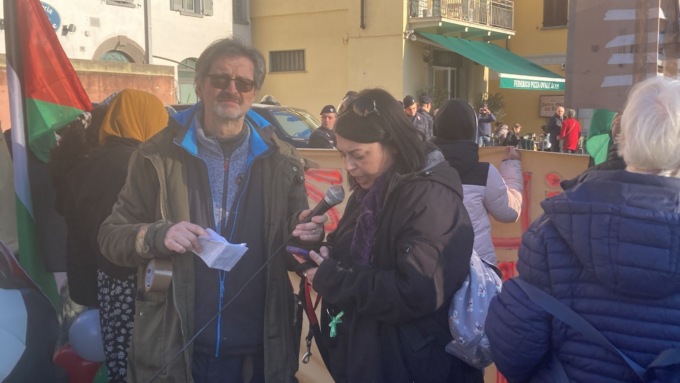 Lì, all’ombra del matitone, Corrado Conti, storico attivista della sinistra lecchese ha sottolineato che “il massacro che avviene in Palestina e quelli  nelle oltre 50 guerre che insanguinano il mondo vengono in realtà preparati e incentivati anche attraverso la produzione di armi e munizioni, la realizzazione di veicoli militari, l’implementazione di sistemi di comunicazione militari, la preparazione di cibo e vestiti per i militari e anche a Lecco e nel Lecchese le  aziende impegnati in questi settori non mancano. Il riferimento è alla Fiocchi Munizioni, alla Fb Group dI Annone Brianza, a Telespazio di Gera Lario, a Mcdonald e a Carrefour. L’invito è quello di boicottare queste realtà economiche”.