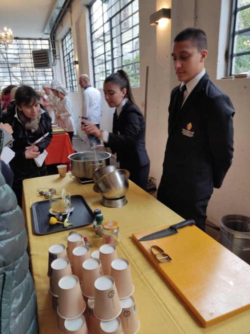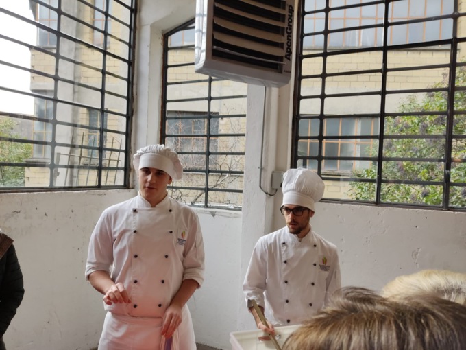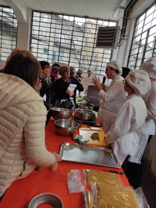 La parola è quindi passata agli studenti che, sotto l’occhio vigile di tre insegnanti – Monica Nuzzi, Marta Cazzaniga e Fabrizio Piombo – hanno preparato due piatti unici, un dolce e una tisana spiegando i vari passaggi della preparazione ai commensali.