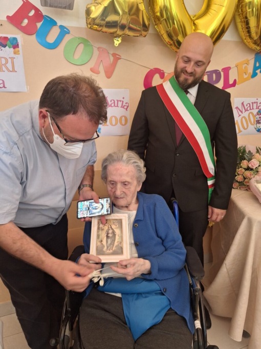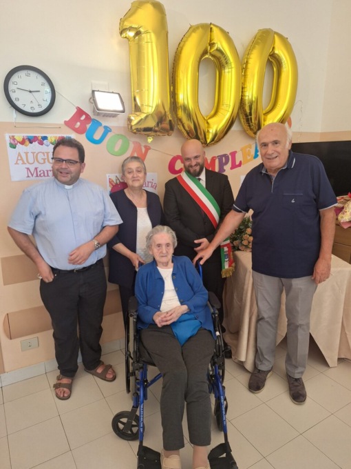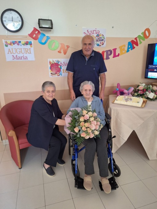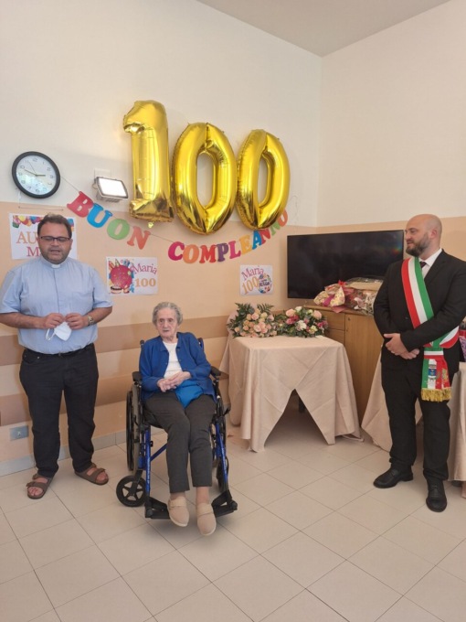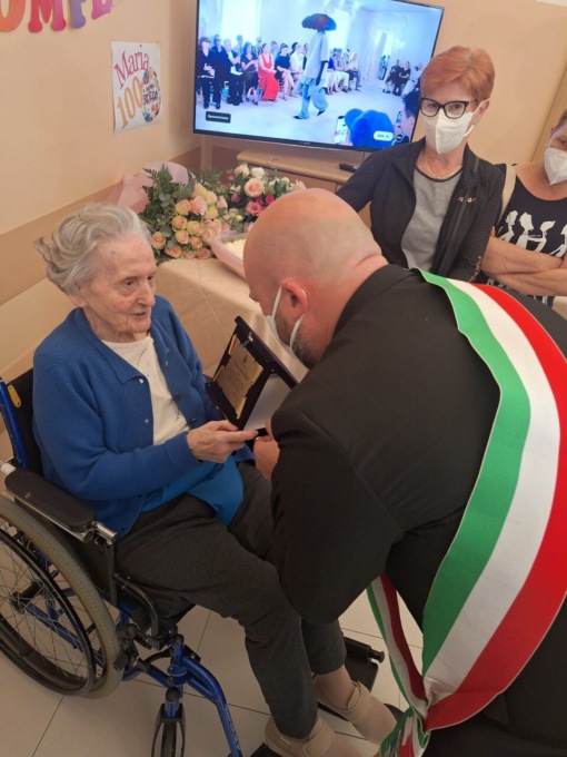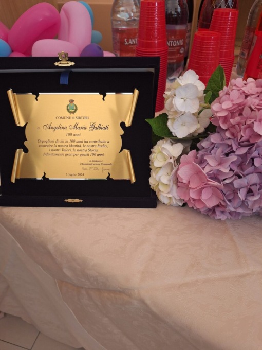 Dopo aver ricevuto un bouquet di fiori da Presidente e Vice Presidente della struttura, Angelina Maria ha pranzato con i figli, le nuore e la sorella con un menù speciale per la festeggiata e tutti gli ospiti. Dopo pranzo, ha ricevuto poi la gradita visita del Sindaco di Sirtori, Matteo Rosa, accompagnato da un consigliere comunale e da una rappresentante dell’Associazione Anziani di Sirtori. Il Sindaco ha donato ad Angelina Maria una targa e splendidi fiori.