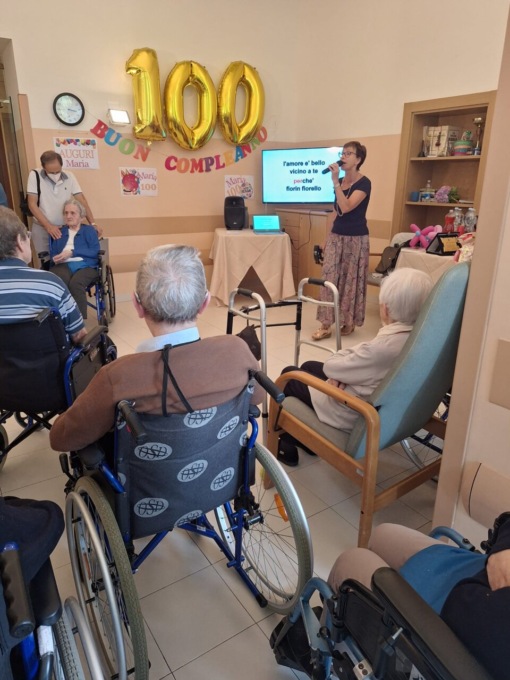 I festeggiamenti sono poi proseguiti con l’esibizione musicale della bravissima Elena, che ha cantato insieme ai nostri ospiti e al personale. Balli, musica, torte, dolci e bevande…100 anni speciali insomma.
