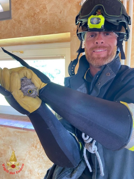 Gufo incastrato in una canna fumaria, liberato dai Vigili del fuoco