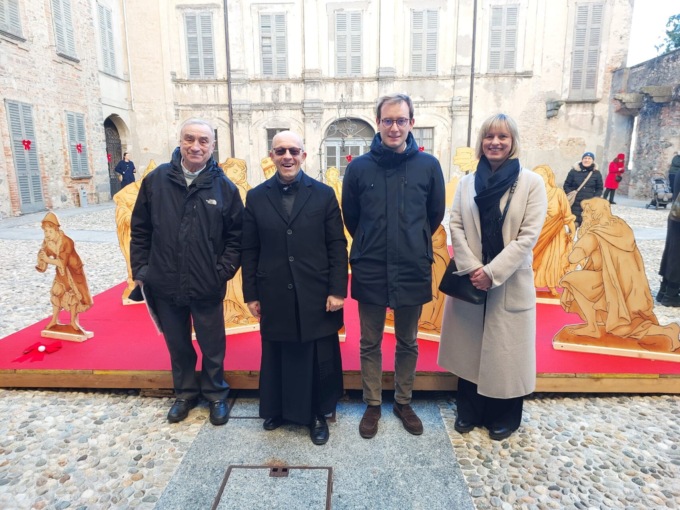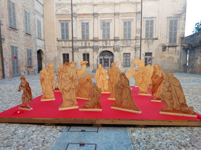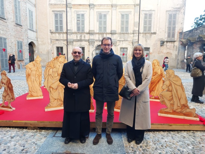 “Il presepe nel cortile di Palazzo Prinetti vuole essere un messaggio che ci ricorda le radici della nostra salvezza” afferma don Mauro Malighetti, prevosto di Merate, presente al taglio del nastro di sabato mattina accanto al sindaco Mattia Salvioni e Anna Crippa di Stampedil.