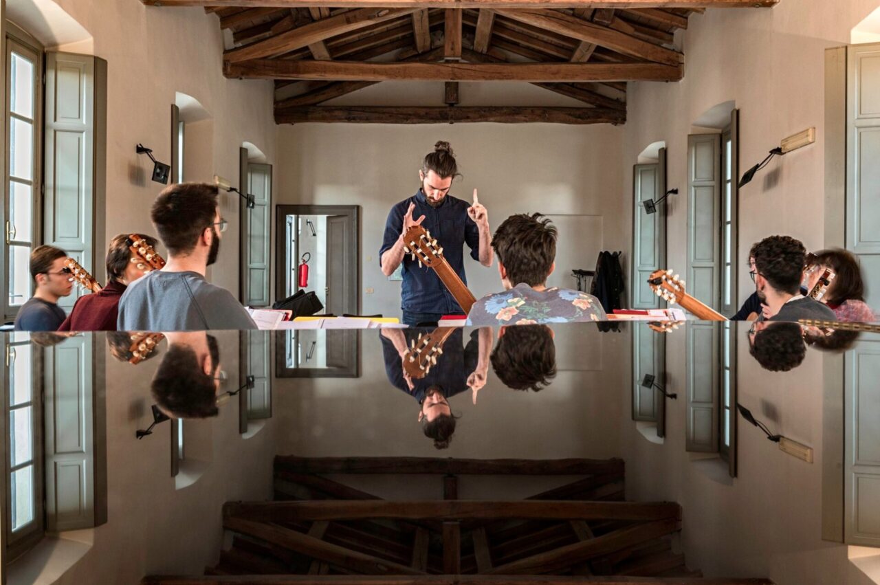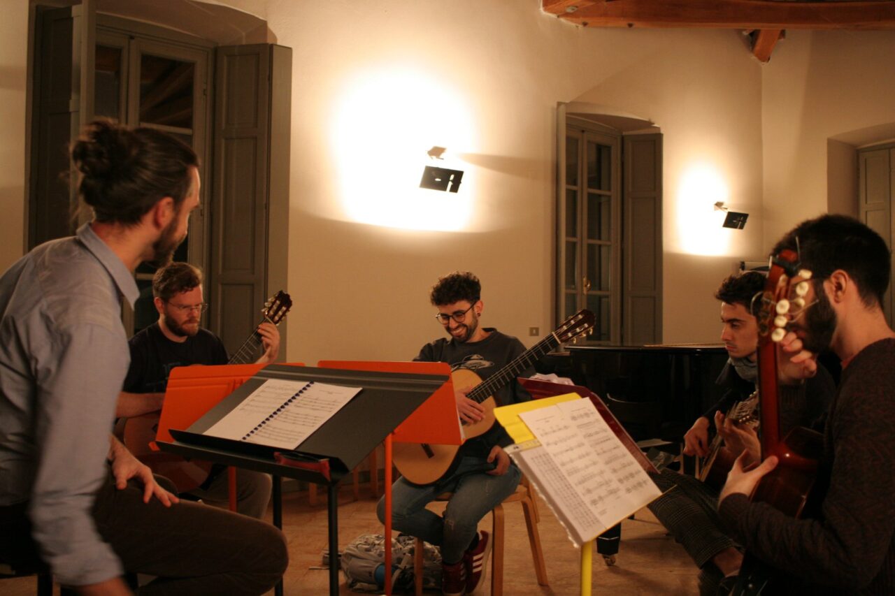 “Il concorso si svolge in due fasi, eliminatoria e finale – ha spiegato il Maestro Matteo Redaelli, direttore dell’ensemble – Durante la prima fase abbiamo eseguito Escualo, un brano di Astor Piazzolla nella trascrizione dell’ex direttore della scuola, Massimo Mazza, e She’s leaving home dei Beatles, trascritta dal compositore cubano Leo Brouwer e adattata da me per l’ensemble. Per la finale, invece, abbiamo inviato un video in cui suoniamo Hamsa, una suite in cinque movimenti di Roland Dyens”.