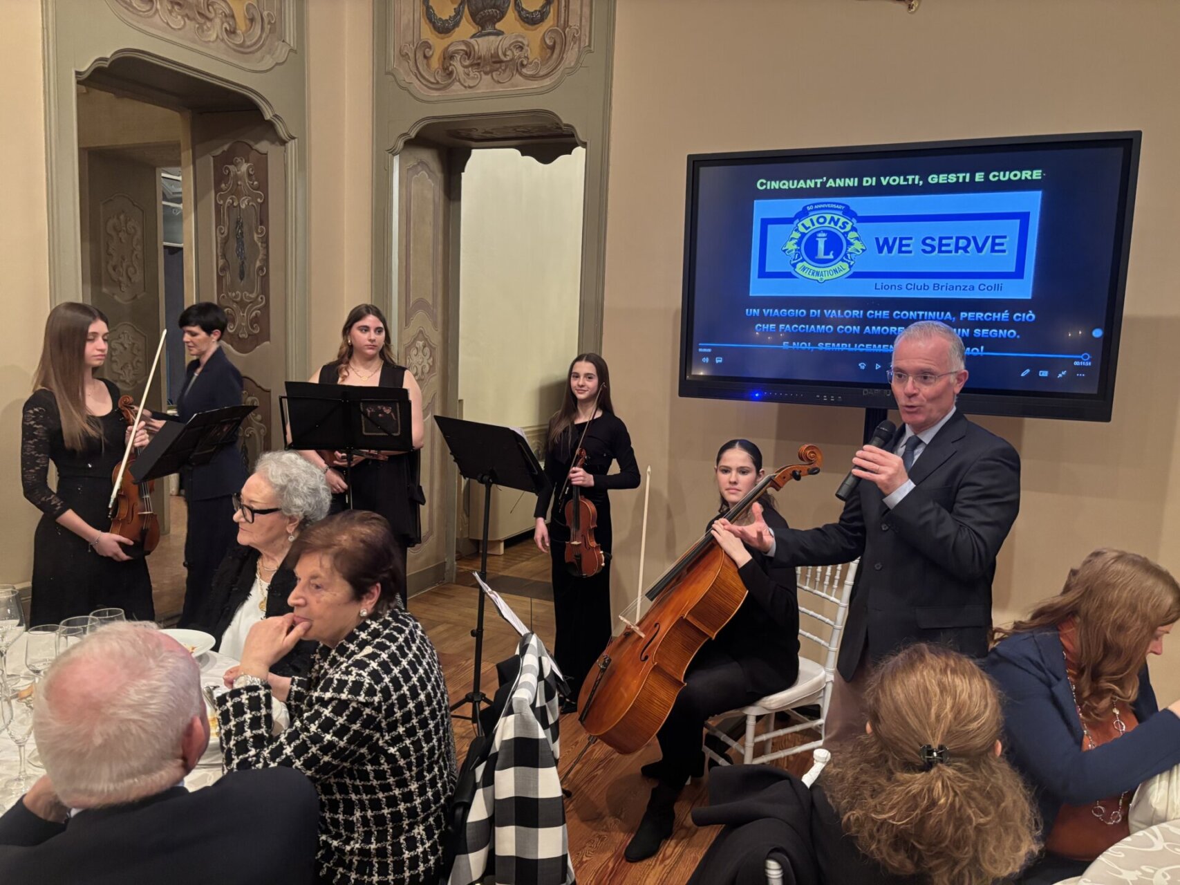 I festeggiamenti sono iniziati alle 18 con la Messa in suffragio dei defunti del Club e sono proseguiti con la serata celebrativa nelle sale di Villa Subaglio, accompagnata dalle note del quartetto d’archi Narciso, composto da giovani musiciste della scuola di musica “San Francesco” di Merate. Una serata speciale fatta di ricordi, emozioni e tanta solidarietà: “Per questa occasione abbiamo scelto di dare un significato ancora più profondo alla serata, devolvendo l’intero ricavato al Fondo Carabinieri e all’Ospedale di Merate, per sostenere chi si prende cura della nostra comunità ogni giorno” fanno sapere i soci Lions.