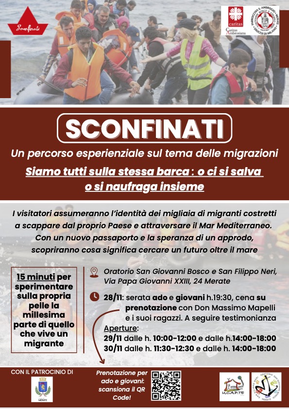 Un passaporto nuovo, uno zaino leggero e quindici minuti per attraversare un mare che non è davvero mare, ma che pesa come se lo fosse. A Merate sta per arrivare “Sconfinati”, il percorso esperienziale ideato da don Massimo Mapelli e dai ragazzi della Onlus Ucapte (Una Casa Anche Per Te), realizzato con la collaborazione della Caritas S. Ambrogio di Merate e con il patrocinio del Comune. Un percorso immersivo per raccontare, dall’interno, il dramma e la speranza di chi attraversa il Mediterraneo alla ricerca di un futuro.